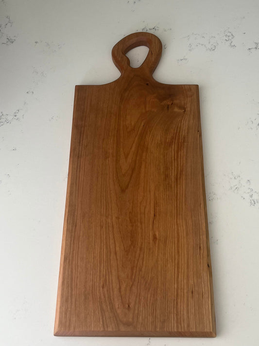Cherry Paddle Cutting Board- 22"x 8.87" Solid No Glue, Curved Paddle Handle, Wood Serving Board