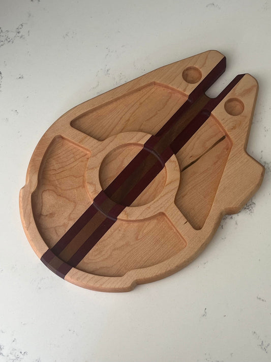 Handmade Wood Millennium Falcon Charcuterie Board, Star Wars Gift, Wood Movie Tray