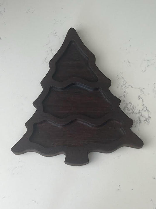 Christmas tree wooden appetizer serving tray, Walnut solid piece- No glue, Perfect for holiday parties
